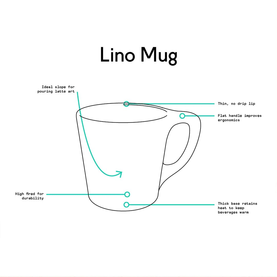 - Elérhető változatok a Lino sorozatban: Espresszó csésze 9 cl, cappuccino csésze 18 cl, latte csészék 24 cl és 36 cl, kávés csésze 30 cl, szervírozó tányérok, tejkiöntő és színes bögrék