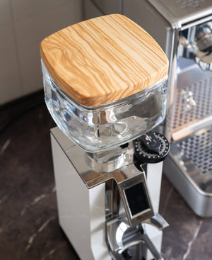 Ez a kézzel készített tömörfa fedél egyedi gyártású Eureka Mignon 500 g-os üvegtartálya. Egyszerű, mégis stílusos módja annak, hogy fokozd kávédarálód megjelenését és érzetét – tökéletes azok számára, akik értékelik a lélekkel teli anyagokat.