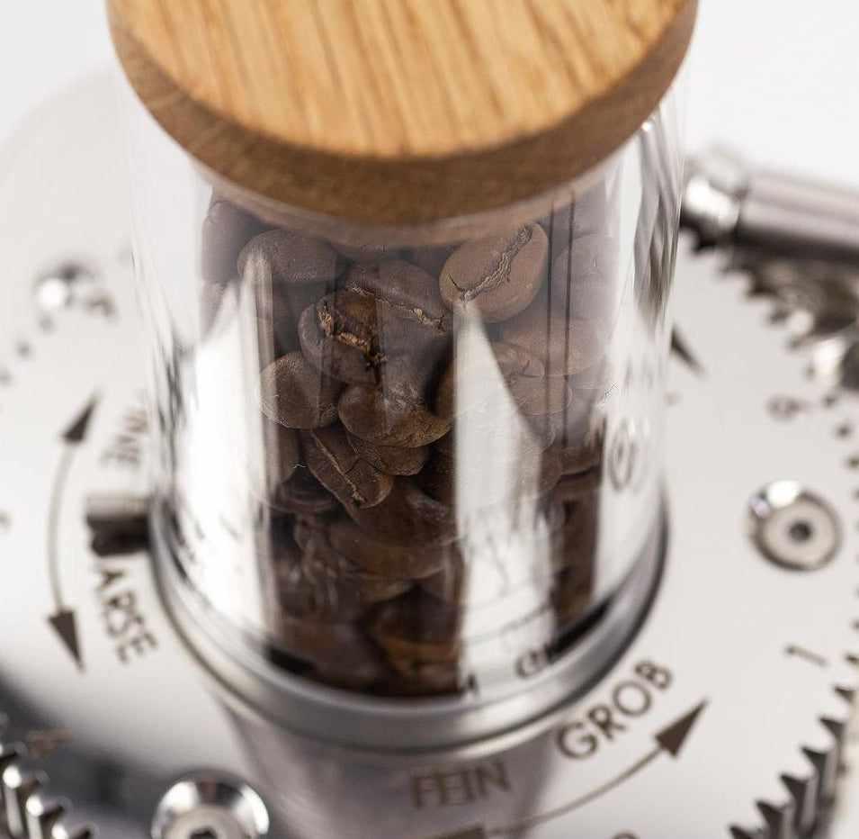Minden termékünket a Wiedemann manufaktúrában kézzel készítjük, és fenntartható erdőgazdálkodásból származó fából gyártjuk. A babtartónk tökéletes fejlesztés a kávédarálódhoz, és folyamatosan frissen tartja a babjaidat.
