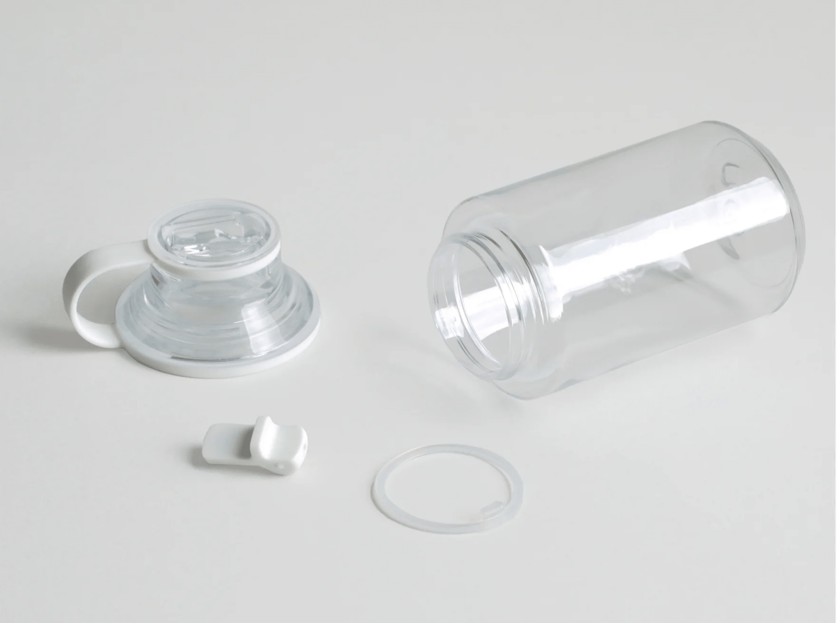 A palack kristálytiszta üvegszerű megjelenésű, mégis könnyű és tartós. A könnyű, puha fogású fogantyú kényelmes fogást biztosít még akkor is, ha a palack tele van. A praktikus szívószálnak köszönhetően könnyen iható egy kézzel is – tökéletes a tevékenységre való összpontosításhoz.