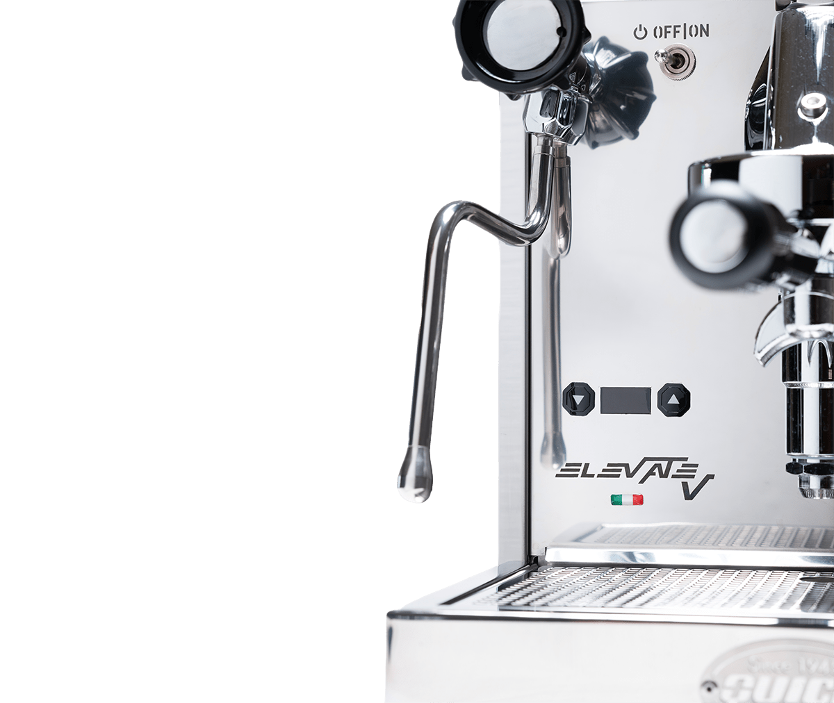 Az Elevate V a Quick Mill exkluzív, ergonomikus szelepeivel és égésgátló rudakkal van felszerelve — tökéletes a tejhabosításhoz és biztonságosabb kezelést biztosít.