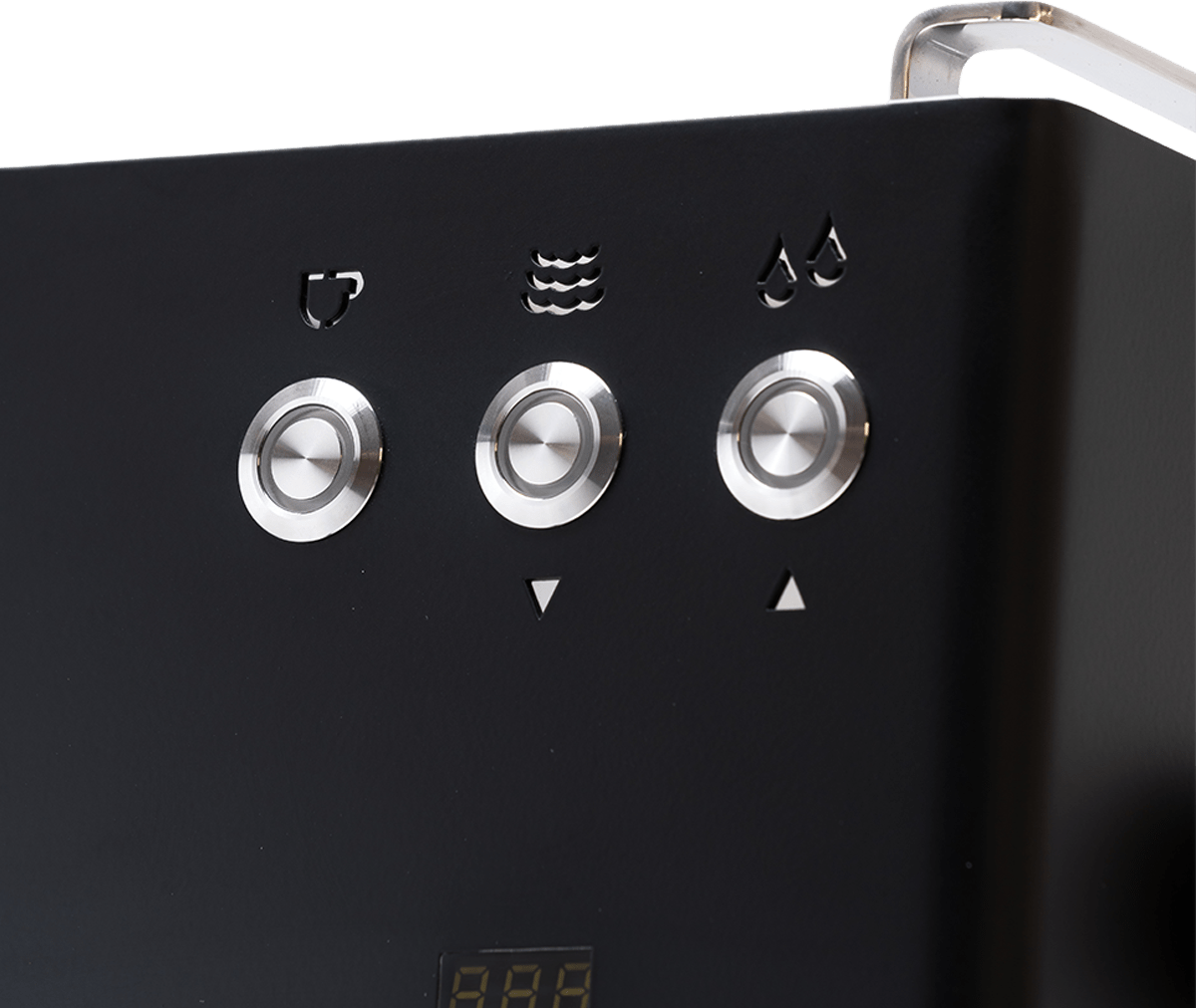Vezérlés: PID; kijelző (hőmérséklet, shot időzítő, beállítások); programozható előáztatás, eco és készenléti mód; szivattyúnyomás-mérő 0–16 bar; profilozó szelep; vandalizmusálló háttérvilágítású gombok; be-/kikapcsoló