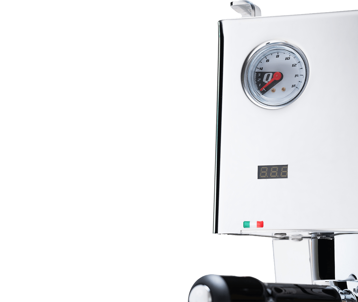 A szivattyú- és bojlernyomás mérővel pontosan láthatod, hogyan dolgozik a gép, és hogyan befolyásolják a beállításaid az extrakciót.