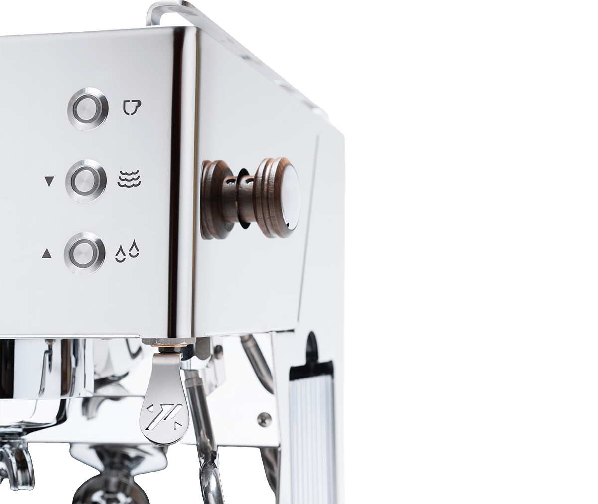 A gép rozsdamentes acél vagy matt fekete változatban érhető el, mindkettő fa részletekkel a gőzszabályozón és a portafilteren. A gyűrűs főzőcsoport egyenletes hőmérsékletet és megbízható építési minőséget biztosít.